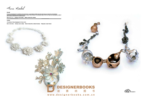 该书精选了来自世界各地50位设计师的新颖首饰作品,包括项链,戒指,腕饰,胸针,耳饰设计等。书中对每件首饰的尺寸,材料,工艺等都做出了介绍。该书的整体规划是按照材质进行分类的,分为:金属/珠宝/玻璃,瓷,陶/木/线/综合,六大类。首饰作品理念上大胆前卫,材料敢于创新,即有唯美清润的作品,也有颠覆性的造型设计。使读者在了解精美的首饰艺术的同时享受一场震撼的视觉盛宴。大约450页的超级信息量,一定会让你大呼过瘾。