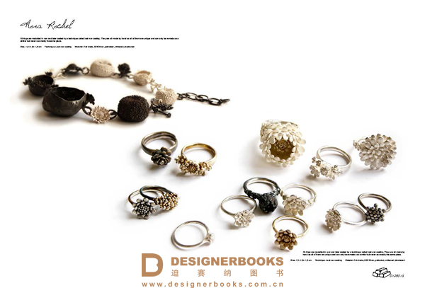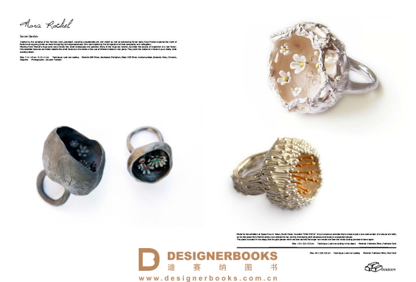 该书精选了来自世界各地50位设计师的新颖首饰作品,包括项链,戒指,腕饰,胸针,耳饰设计等。书中对每件首饰的尺寸,材料,工艺等都做出了介绍。该书的整体规划是按照材质进行分类的,分为:金属/珠宝/玻璃,瓷,陶/木/线/综合,六大类。首饰作品理念上大胆前卫,材料敢于创新,即有唯美清润的作品,也有颠覆性的造型设计。使读者在了解精美的首饰艺术的同时享受一场震撼的视觉盛宴。大约450页的超级信息量,一定会让你大呼过瘾。